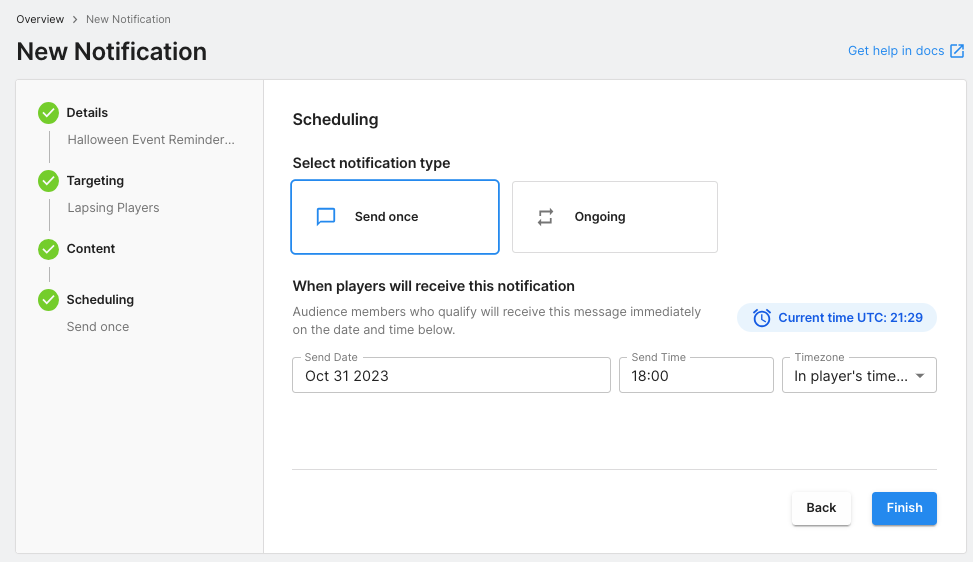 - 自动提高参与度:根据过去的行为自动向玩家群组(例如,流失的玩家)发送消息,旨在减少玩家流失。