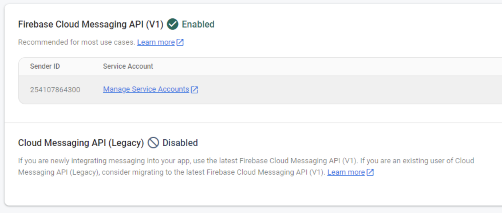 - 选择 ENABLE Cloud Messaging API (Legacy)(启用 Cloud Messaging API(旧版))。