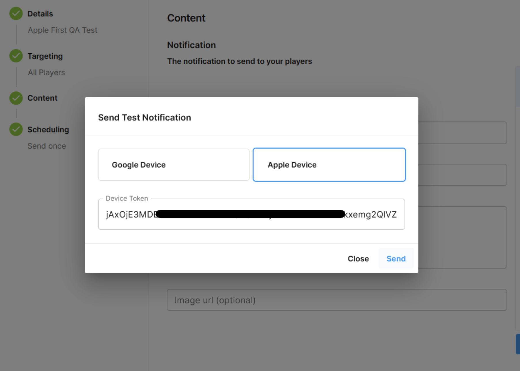 - 选择 Send(发送),然后查看设备是否收到通知。