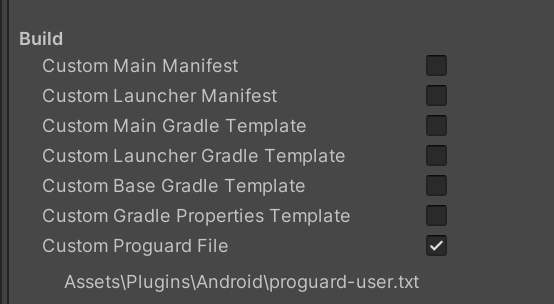如果您已完成 EDM4U/MDR 故障排除部分,但仍然收到类似于以下错误的信息:检查 Player Settings(播放器设置)> Publishing(发布)> Minify(缩小) 下的 Minify(缩小)选项。如果勾选了java.lang.ClassNotFoundException: com.unity.services.pushnotifications.android.UnityCallbackClass