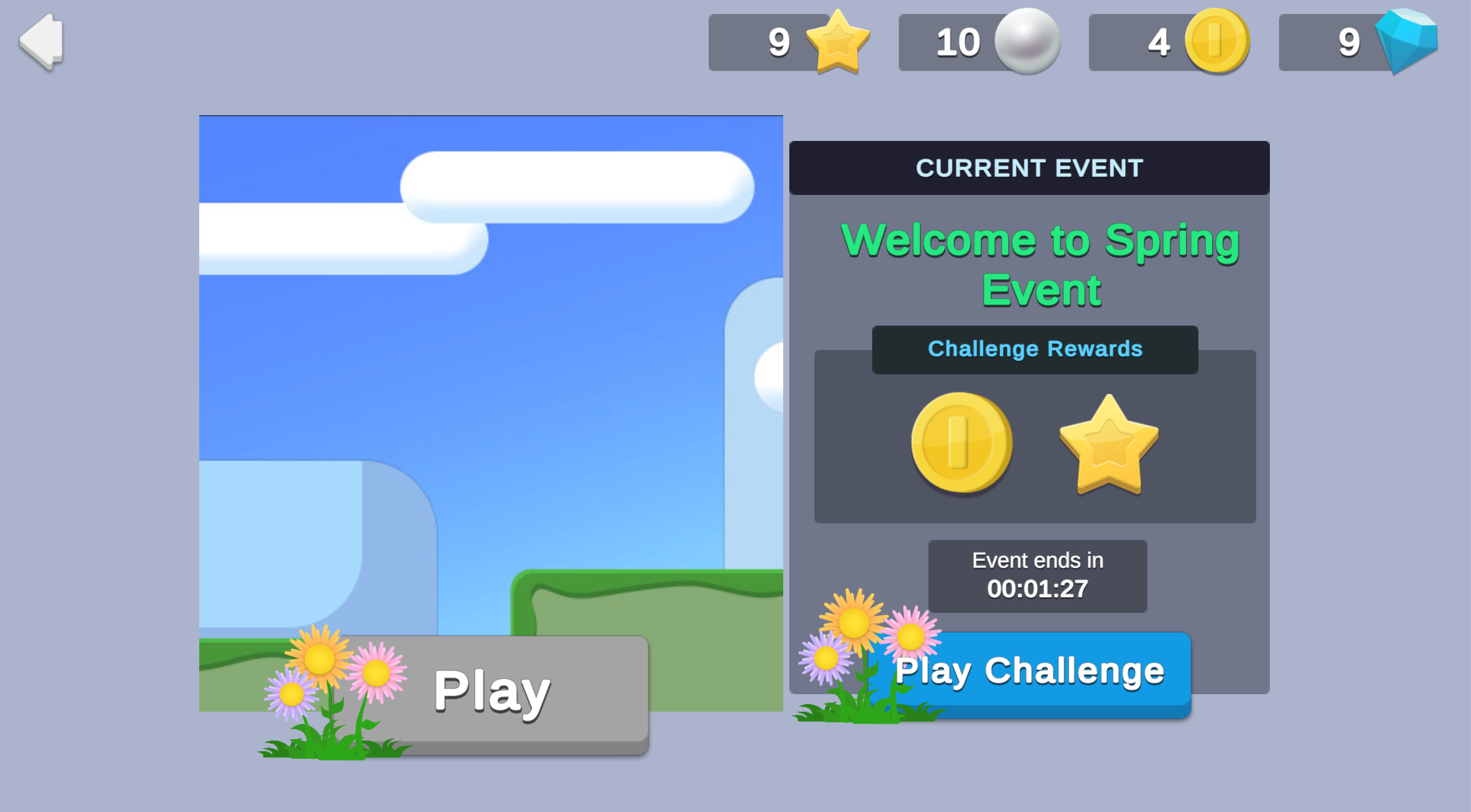 Seasonal events can increase game sessions and overall interest in a game, because they give existing players new and fun content throughout the year to look forward to, and can entice new players to begin playing. This sample shows how you can set up seasonal events. It showcases four events, Fall, Winter, Spring, and Summer, however you can extend this example to configure events for anything you want. Each event displays the currency rewards you can win during the event, a countdown indicating how much time is left in the current event, and a Play Challenge button that opens a pop-up where players can collect their rewards for winning the challenge.